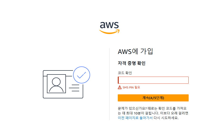 국가 또는 리전을 꼭 대한민국 +82로 바꾸고 휴대폰 번호를 적은 후, 보안검사 문자 입력